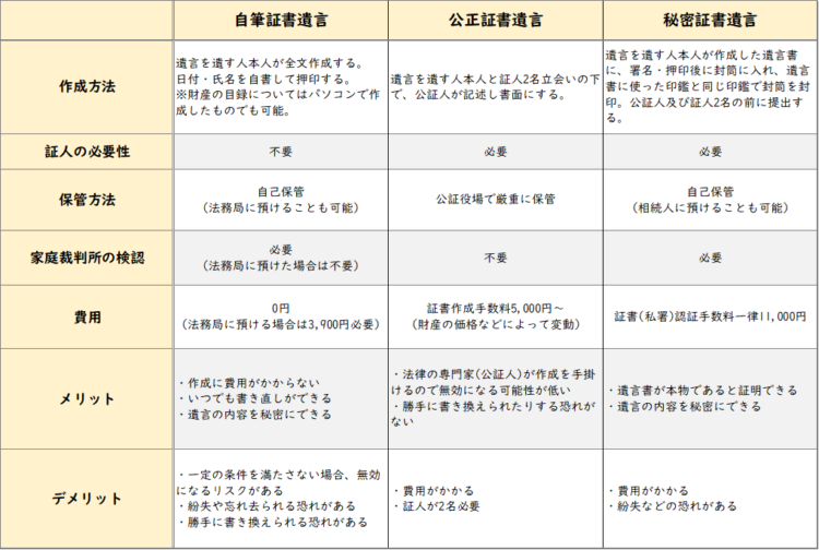 遺言書には以下の3種類があります。